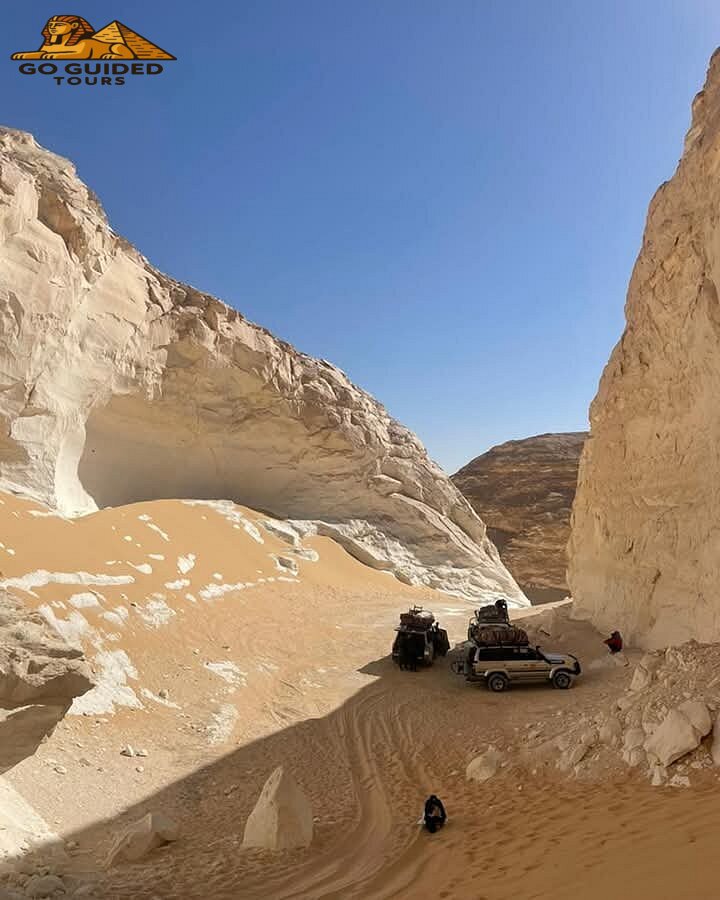Embark on an exhilarating 4×4 safari through the dramatic landscapes of the Black Desert and the surreal formations of the White Desert, where volcanic hills and sculpted chalk formations create a dreamlike scenery. Your adventure begins with a half-asphalt, half-desert route, offering dynamic terrain that brings the natural beauty of Egypt’s Western Desert to life. With a skilled driver and modern 4×4 vehicle, you traverse vast dunes and rocky outcrops, pausing to capture the unique desert vistas and panoramic sunsets.